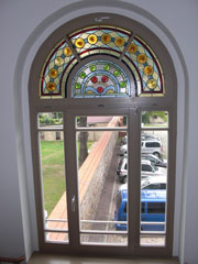 ![]() Holzfenster im Oberlicht/Bleiverglasung |